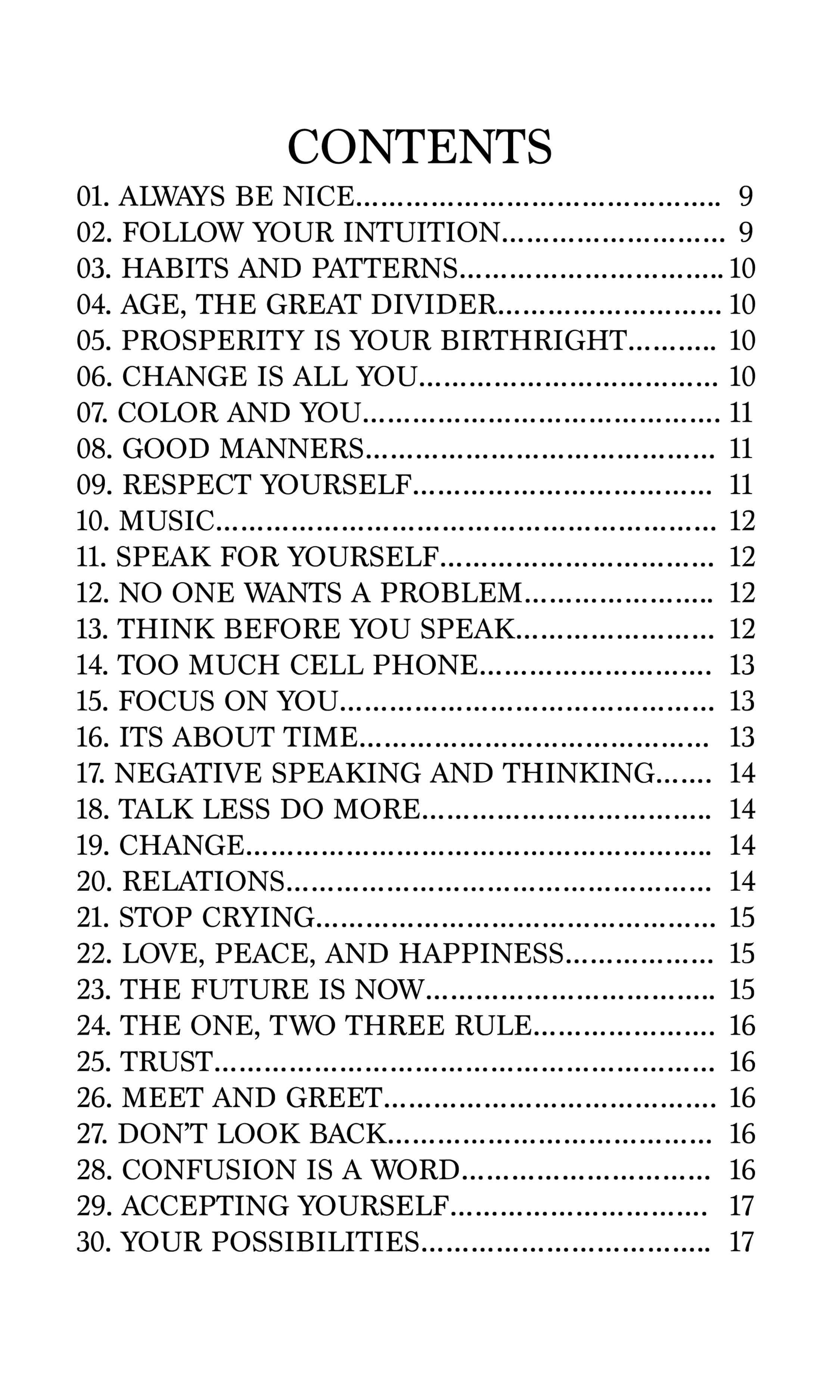 As you can see from the books' table of contents Dr. Wokuluk writes about a cornucopia of topics important to everyone's daily living experience.